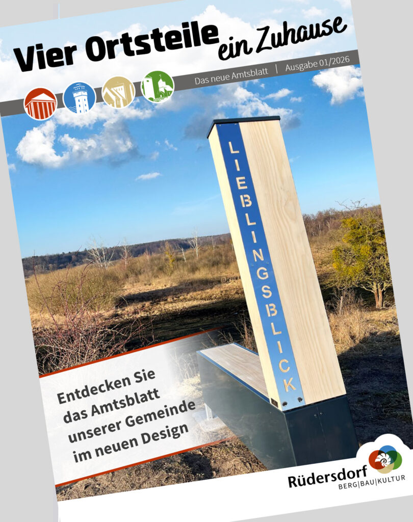 Auch das Amtsblatt zeigt sich mittlerweile frisch und modern. Bisher wurde im Amtsblatt über zum Beispiel Satzungen und Beschlüsse informiert. Dann erfolgte die Information zu Beschlüssen und Bekanntmachungen auf der Webseite. Seit März 2026 gibt es das neue Amtsblatt „Vier Ortsteile – ein Zuhause“, welches an alle Haushalte geht und über aktuelle Themen, Beschlüsse, Regeln, und Abläufe informiert.